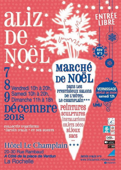 Aliz de Noël La Rochelle, du 7 au 9 décembre 2018Exposition à l'hôtel Le Champlain, 30 rue Rambaud ----------------------------------------------------------------------------------------------------------------------------------------------------------------------- |