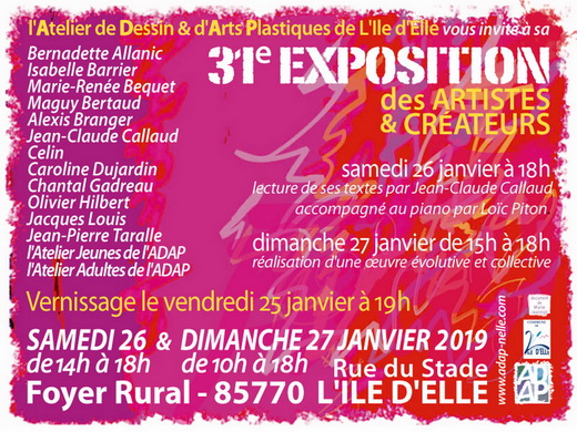 31ème exposition de l'ADAP L'Ile d'Elle, les 26 et 27 janvier 2019Foyer rural |
