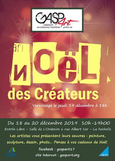 Noël des Créateurs La Rochelle, du 18 au 20 décembre 2019Salle de l'Oratoire, rue Albert 1er |
